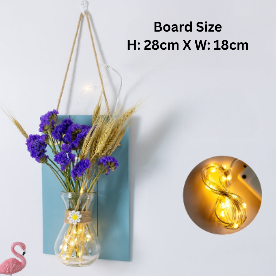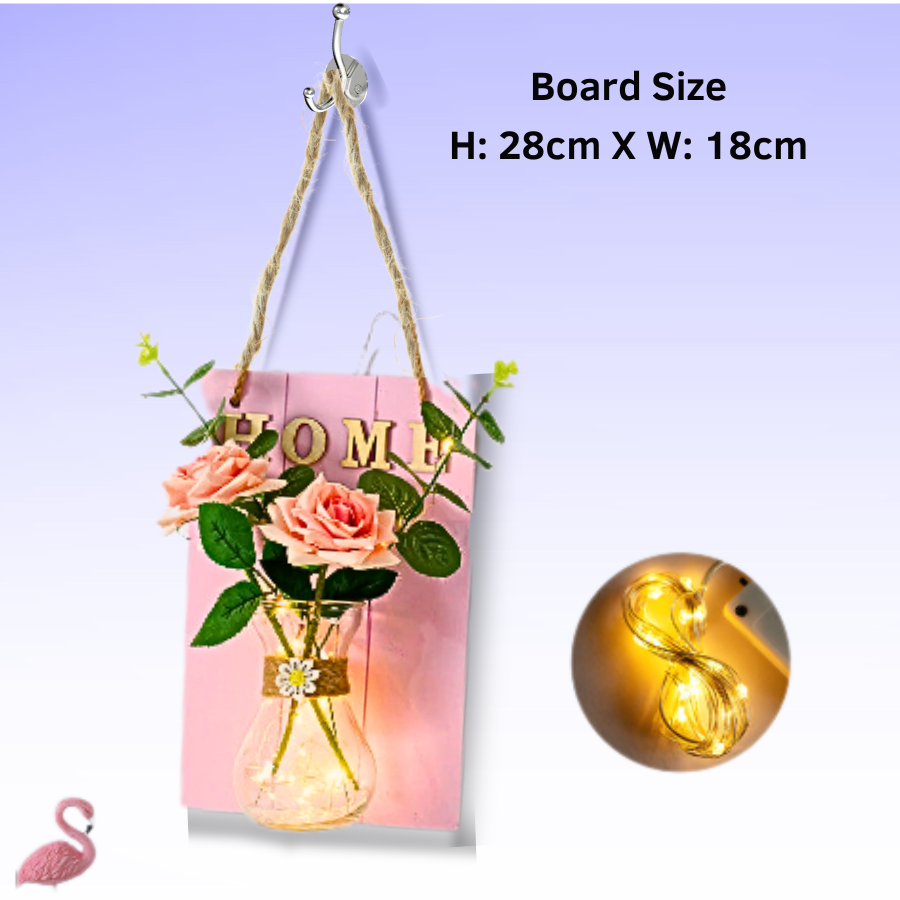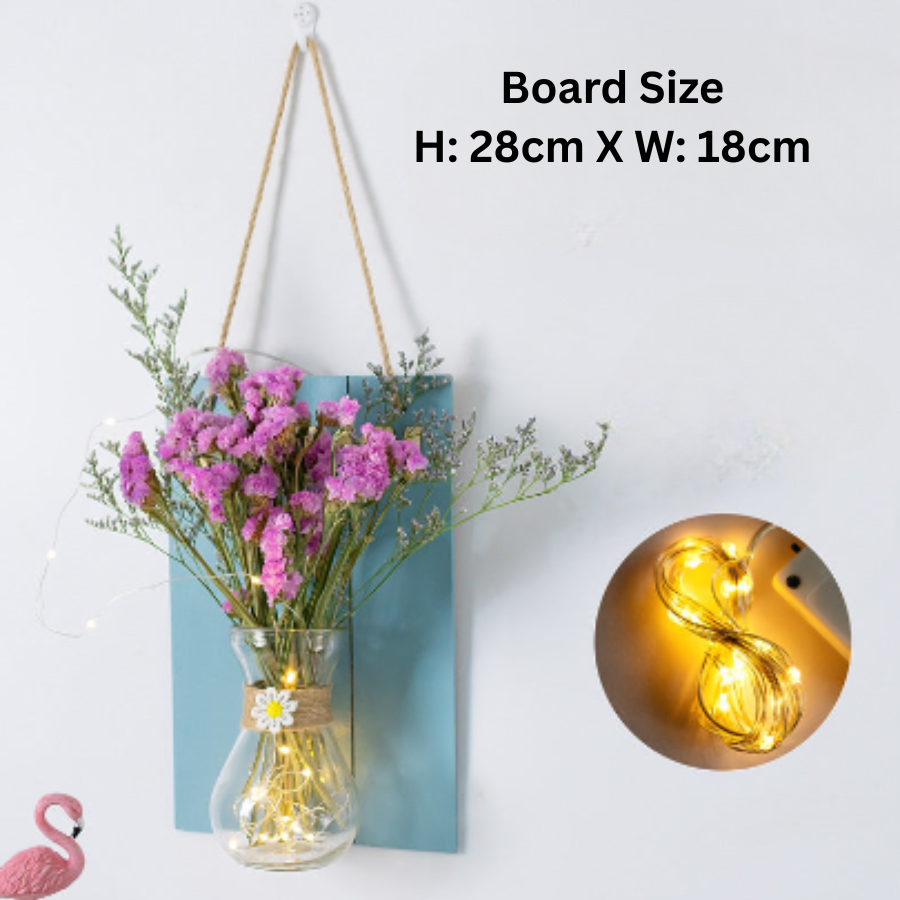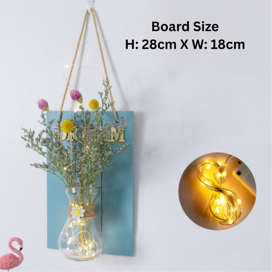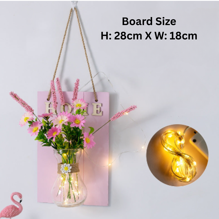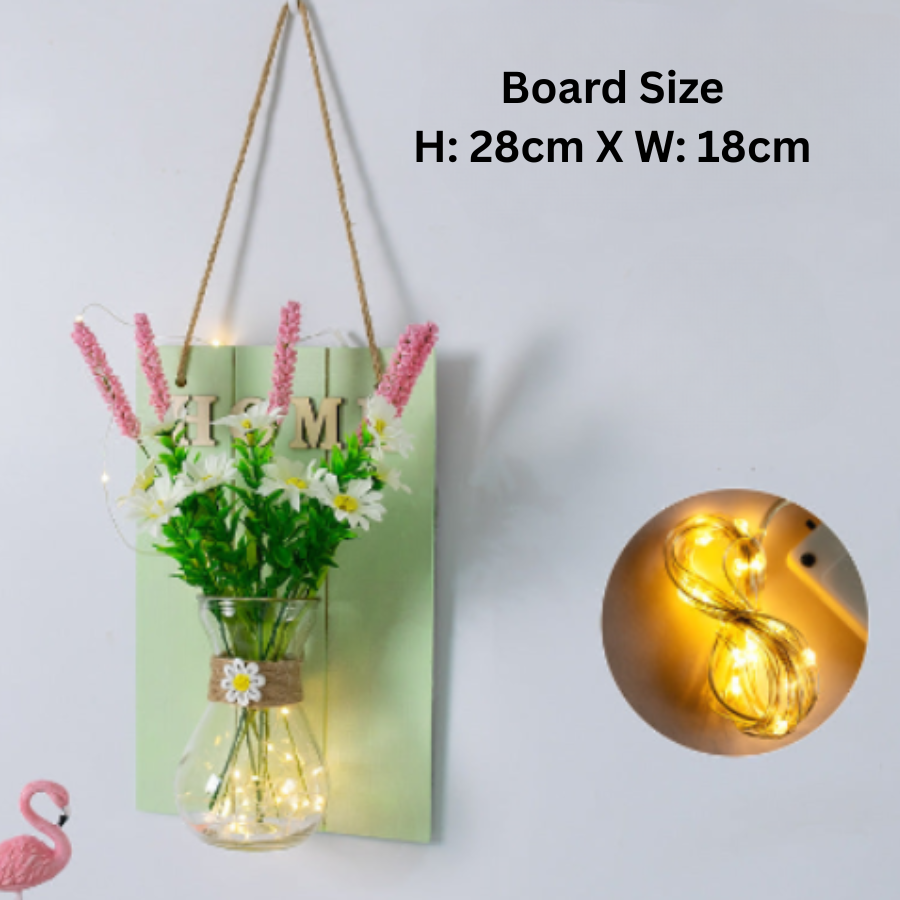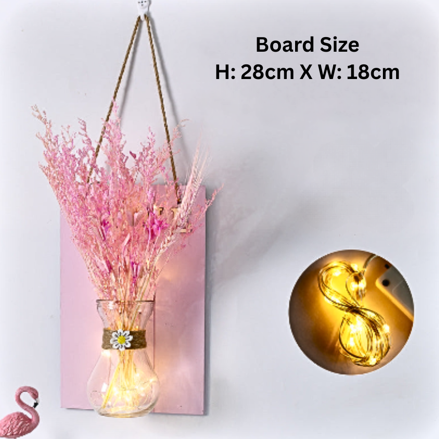 Wall Decoration. Wooden board with vase full of beautiful silk realistic flowers. This product is great for a childs or teens bedroom or a shabby chic room, or even a craft room.