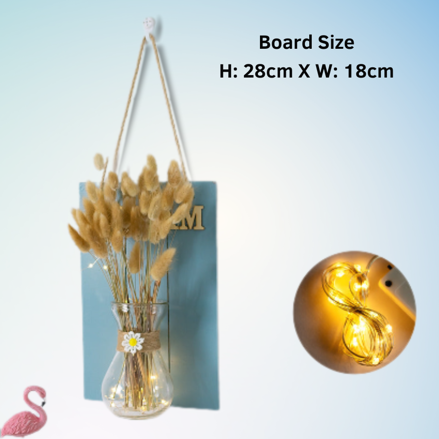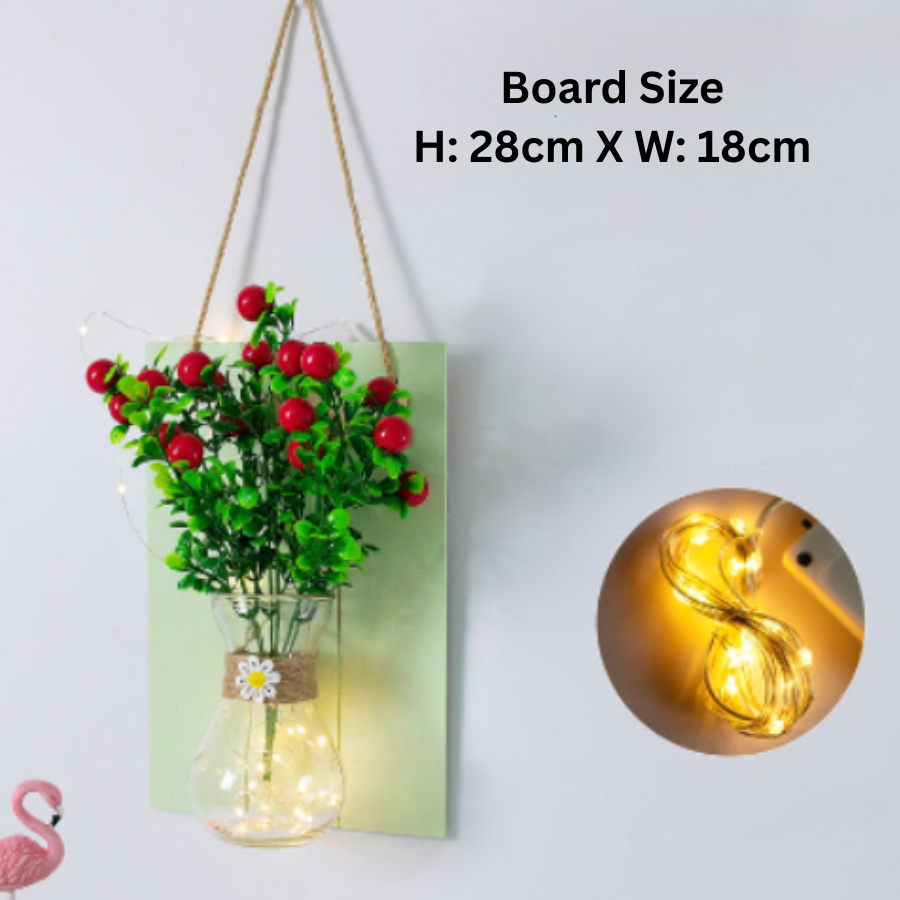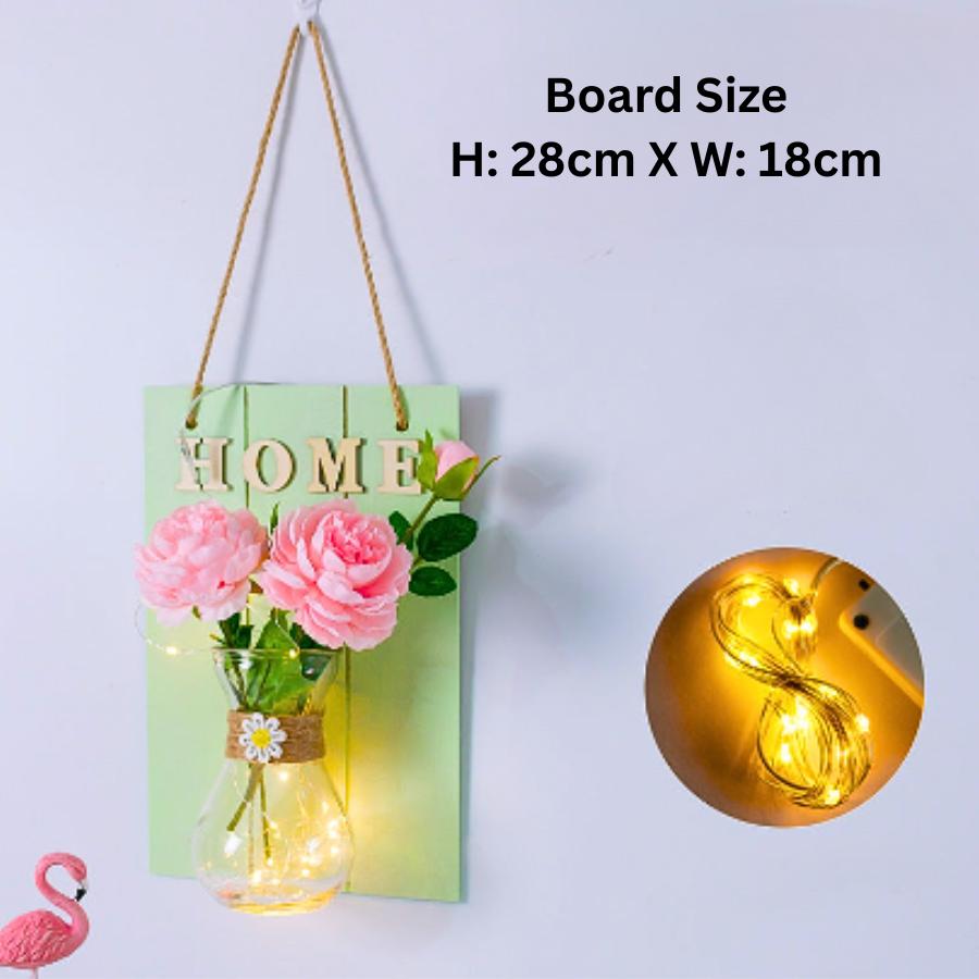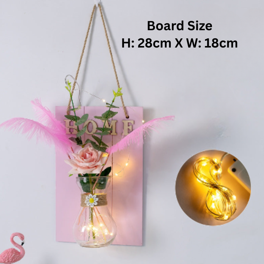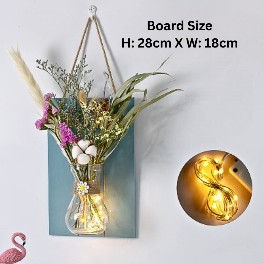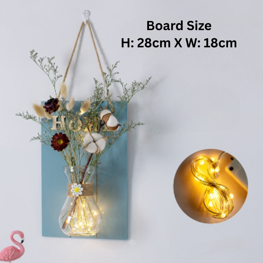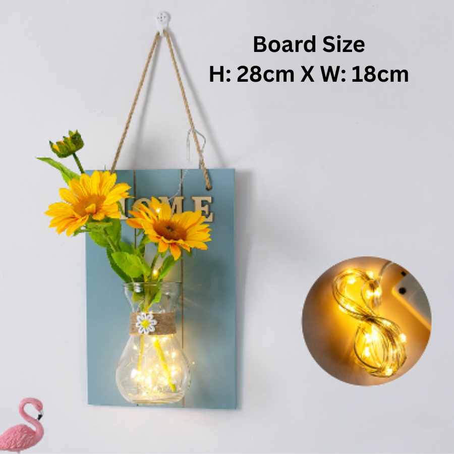 Wall Decoration. Wooden board with vase full of beautiful silk realistic flowers. This product is great for a childs or teens bedroom or a shabby chic room, or even a craft room.